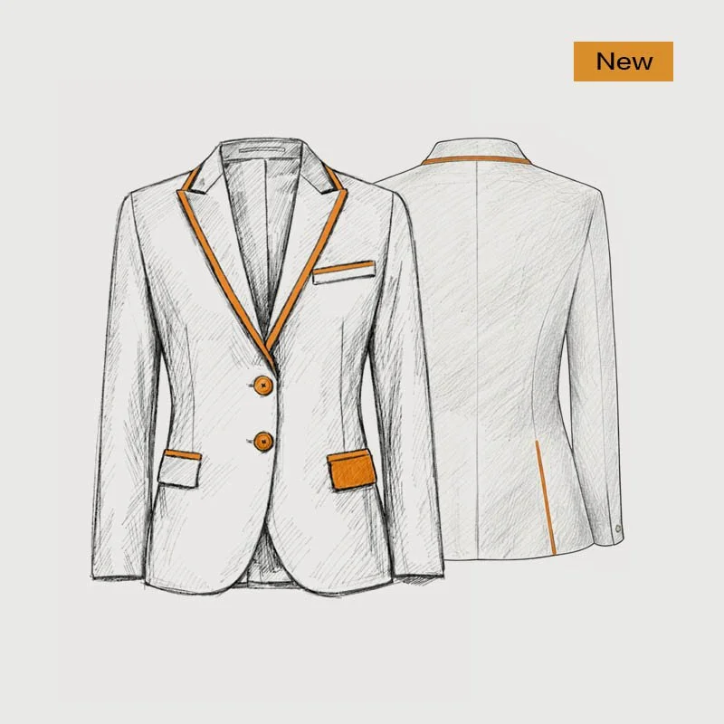 Clubclass Options allows you to take one of our stock supported garments and personalise it by adding different trim and buttons, creating a design that is unique to you. This customisation is undertaken by our skilled alterations team in Yorkshire, meaning leadtimes are not adversely impacted.